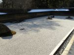 Despues caminamos hasta el templo Rioan-ji famoso por su jardin seco zen. En una extension de la superficie de una pista de tenis, hay 15 piedras rodeadas de gravilla rastrillada. Segun los budistas zen, este jardin es fuente de inspiracion y el lugar perfecto para meditar.