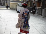 Y tuvimos la suerte de ver a varias de ellas llegando al tea house donde entretienen a sus clientes. Elegantes, hieraticas, apresuradas, blanquecinas…parece que leviten sobre el suelo.