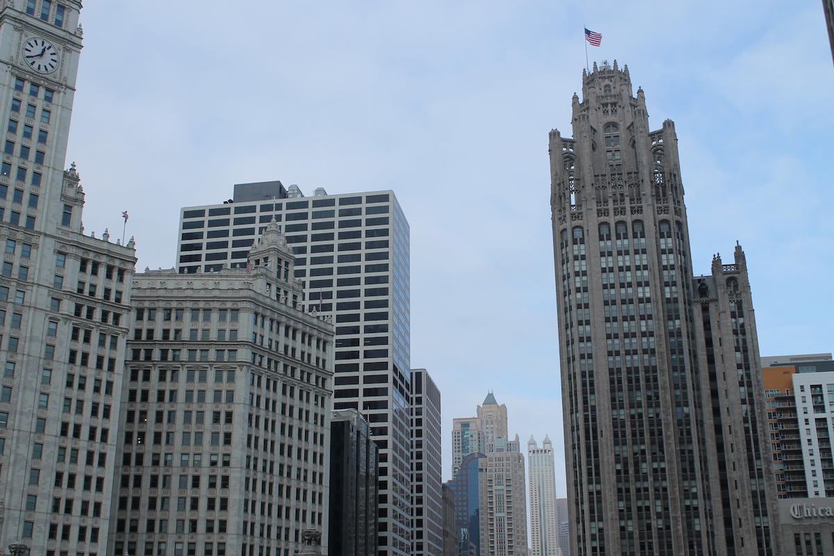 La primera vez que me acerqué al río no podía creer que esa visión de Chicago no se exportara al mundo entero. Edificios clásicos preciosos junto a torres de cristal ultramodernas…al borde del río. Se me pusieron los pelos de punta, no me podía mover a pesar del viento gélido a varios grados bajo cero.