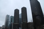 Justo al lado, y destacando por su aspecto reluciente negro, el último rascacielos que Mies Van der rohe diseño antes de morir en 1969 y el edificio Marina city, en forma de mazorcas, como una especie de homenaje a la economía agraria del medio oeste. Y en contraste con tanta modernidad, el edificio Wrigley con una torre-reloj inspirada en la giralda de Sevilla y sobre todo el edificio tribune.